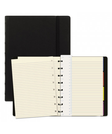 Take notes like a pro. Hardcover notebook features twin-wire binding, a lizard-look cover pattern and an abbreviated note-taking format with space for date, title and page number. Colored, self-stick tabs and labeling stickers allow you to customize an index and draw extra attention to important notes. Easy-tear, microperforated, archive-safe pages.