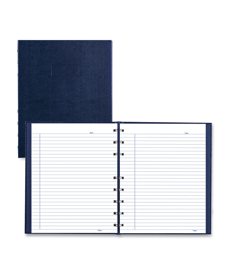 Take notes like a pro. Hardcover notebook features twin-wire binding, a lizard-look cover pattern and an abbreviated note-taking format with space for date, title and page number. Colored, self-stick tabs and labeling stickers allow you to customize an index and draw extra attention to important notes. Easy-tear, microperforated, archive-safe pages.