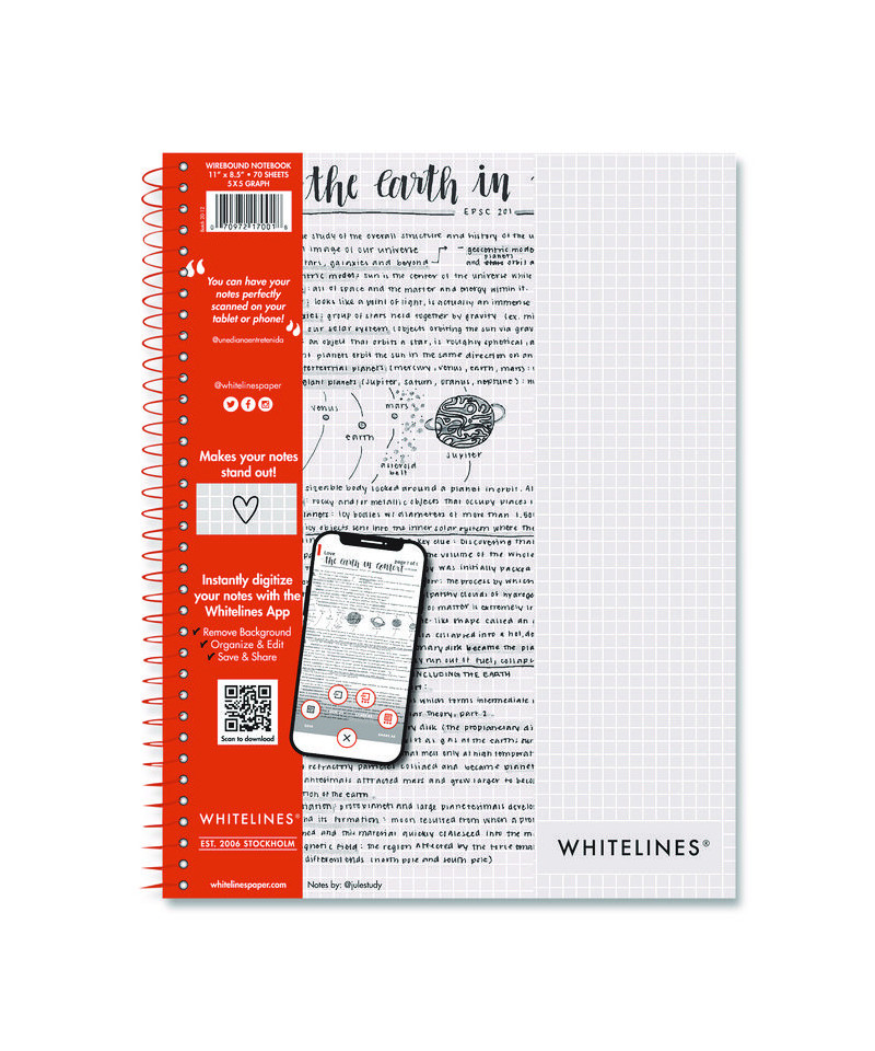 Merge the greater clarity of writing on gray paper with sharing technology and you have Whitelines! The paper has Whitelines technology, which, when combined with the free Whitelines mobile phone app, will create an instant electronic file of whatever is on the page, while eliminating all background not on the paper.