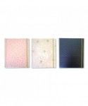 Staying organized has never looked so chic. The classy Keep It In Line Notebook Organizer fuses sophisticated style with practical functionality. Rich, gold-foil stamped designs grace the exterior of each book's sturdy poly cover, while the covers' interior pockets keep loose materials handy. Smooth, nylon-coated, gold wire binding keeps the pages secure, and a matching gold fabric closure both completes the look and doubles as a page marker. High-quality perforated sheets deliver a luxurious writing experience, while ensuring clean separation, so as to not mar the book's good looks.