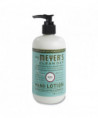 Made with thoughtfully chosen ingredients. Sweet almond oil and shea butter help to soften the driest hands. Moisturizing without being greasy or heavy feeling. Made with essential oils and plant derived ingredients. Made without parabens and phthalates, formaldehyde or artificial colors. Free of animal derived ingredients and not tested on animals. Non greasy hand lotion softens dry skin on hard working hands. Mrs. Meyer's products are made with cruelty free formulas.