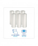 Low-Density Waste Can Liners, 33 gal, 0.6 mil, 33" x 39", White, Perforated Roll, 25 Bags/Roll, 6 Rolls/Carton