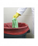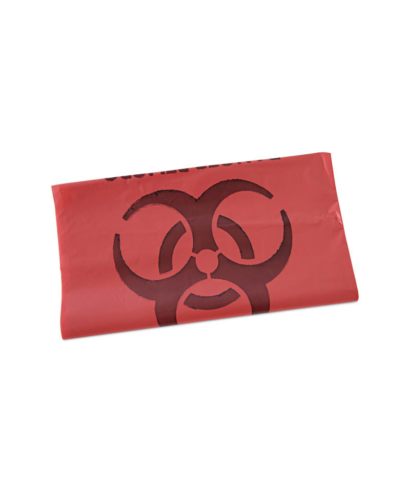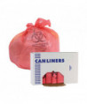 Linear, low-density, high-visibility, bright red medical waste can liners are designed specifically for biohazard materials in health care settings. A high-quality, blended resin can liner that's constructed with puncture and tear resistance for added strength and durability. Biohazard warnings printed in English and Spanish. Meets DOT requirements. Provides trusted trash collection for wet or dry hazardous waste at an economical price. Individually folded for quick and easy dispensing.