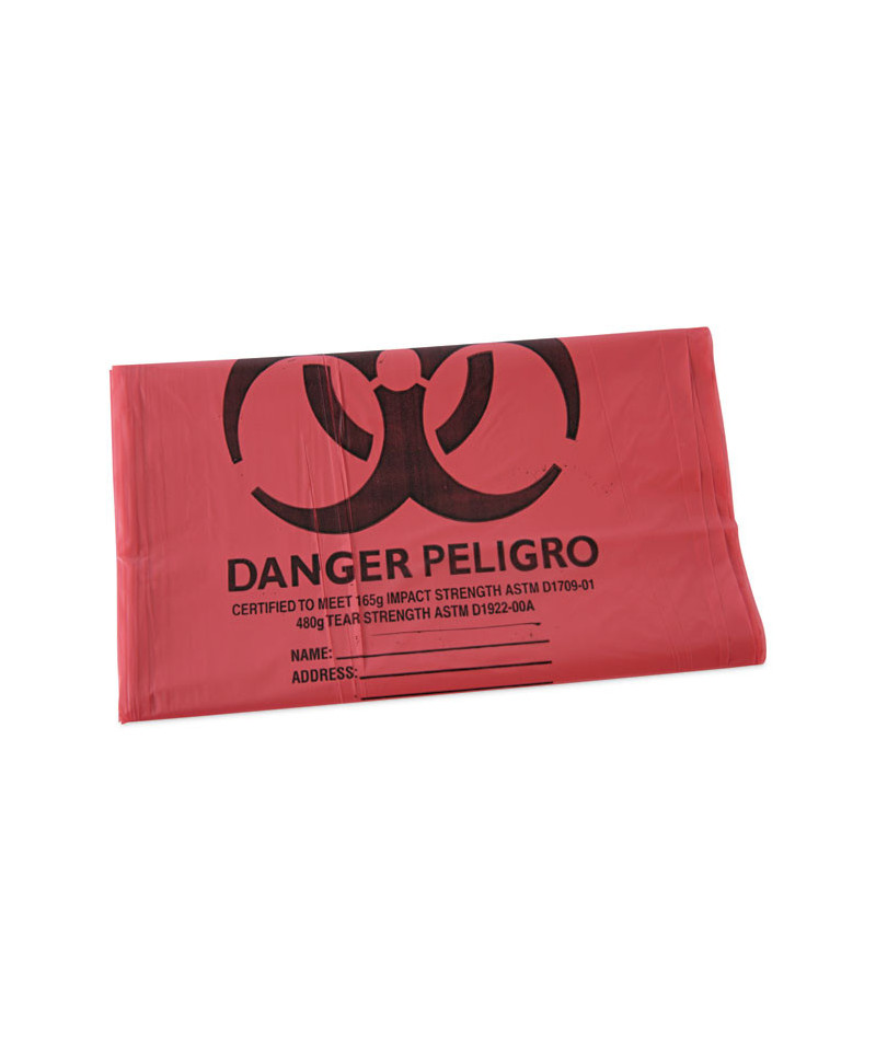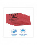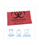 Linear, low-density, high-visibility, bright red medical waste can liners are designed specifically for biohazard materials in health care settings. A high-quality, blended resin can liner that's constructed with puncture and tear resistance for added strength and durability. Biohazard warnings printed in English and Spanish. Meets DOT requirements. Provides trusted trash collection for wet or dry hazardous waste at an economical price. Individually folded for quick and easy dispensing.