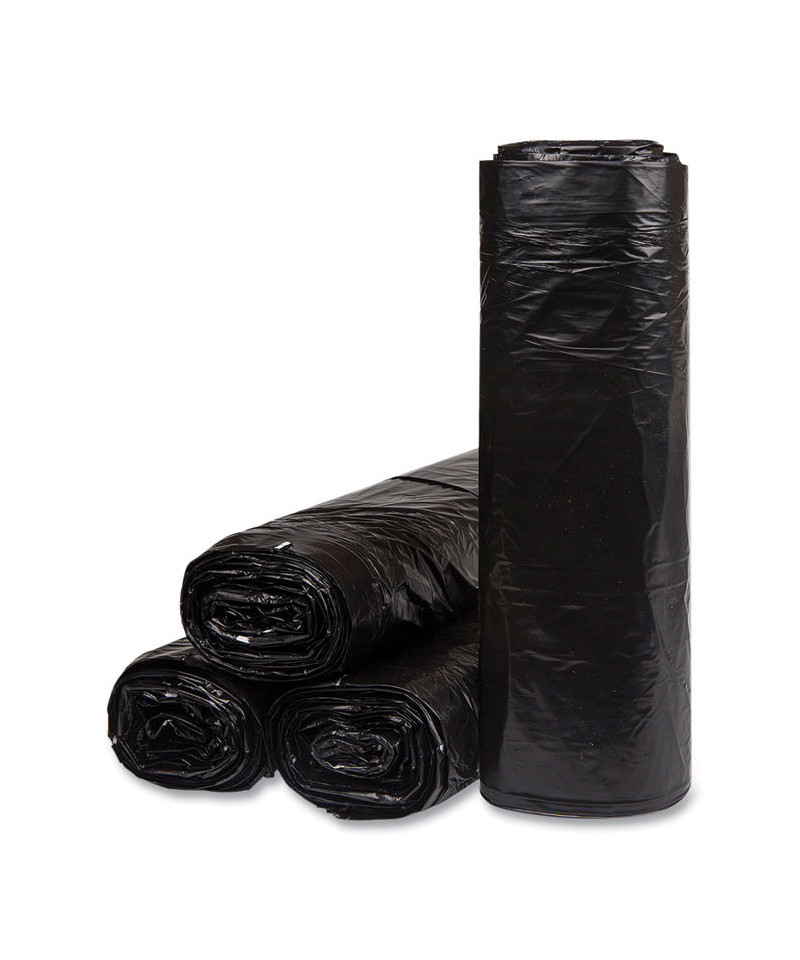 Low-Density Commercial Can Liners, 60 gal, 1.2 mil, 38" x 58", Black, Interleaved Roll, 10 Bags/Roll, 10 Rolls/Carton