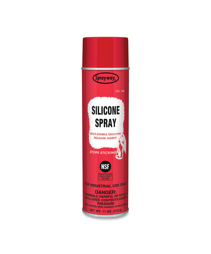This Sprayway® Silicone Spray may be used on food processing equipment as a protective anti-rust film, as a release agent on gaskets or seals of tank closures and as a lubricant for machine parts and equipment in locations with exposure of the lubricated part to food.