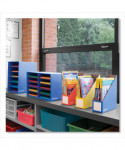 Bankers Box Extra Wide Magazine File for the storage and organizing of oversized materials. Holds magazines, catalogs, file folders, project binders, important papers and documents, art projects and text books. Perfect for shared classroom storage or teacher desktop storage. Sturdy multi-layer construction plus easy assembly. Comes in an array of vibrant colors. Use with Bankers Box other colorful classroom organization products.
