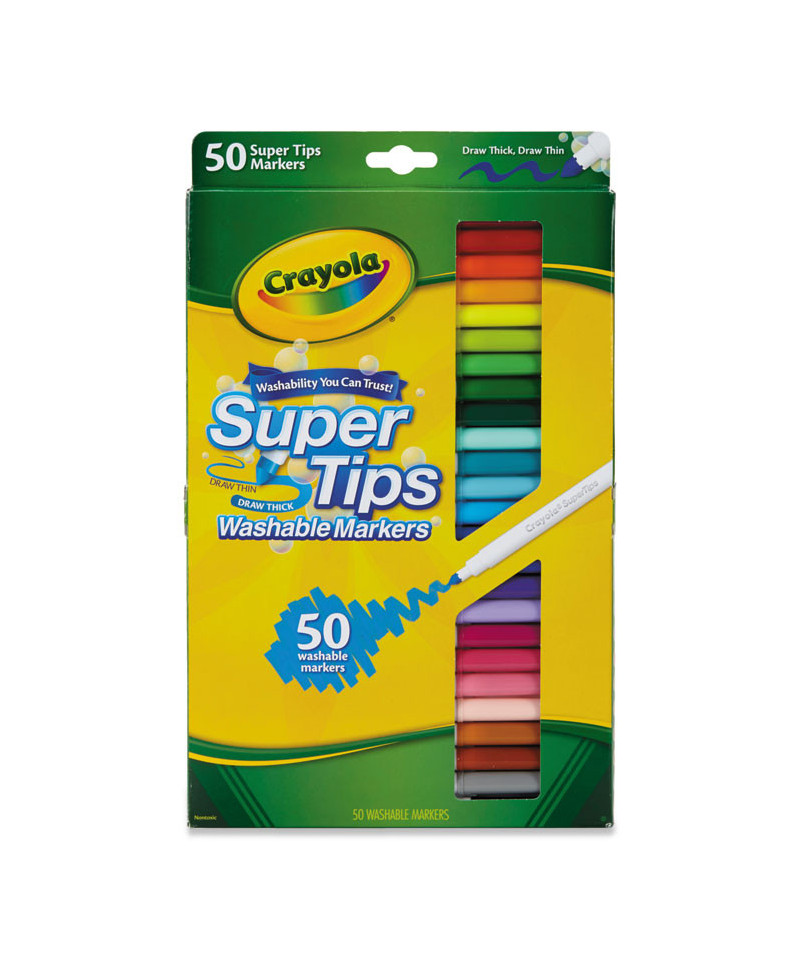 Great for any creative project, these markers have a durable tip that is smooth not scratchy. Super tips are a unique coloring tools because of their specially designed marker tip, which can be used to create thick and thin lines. This makes them a preferred tool for practicing hand lettering and creating detailed DIY crafts. Pair this set with a Crayola coloring book for a great gift idea. It's perfect for birthdays, holidays and everyday creative play.
