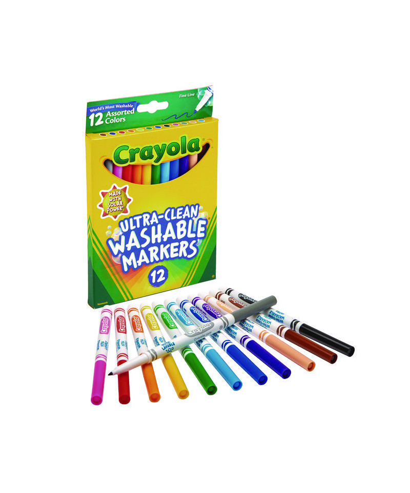 Keep color where it belongs with Crayola® Ultra-Clean Washable Markers, the perfect choice for worry-free creativity. Featuring vibrant Color Max Ink technology, these markers deliver bold, long-lasting color without bleeding through the page, ensuring clean and beautiful results every time. Designed with parents and teachers in mind, the ultra-washable formula easily rinses off skin, walls and most washable clothing, making cleanup a breeze. Ideal for classrooms, art projects and home use, these markers provide bright, vivid colors that inspire creativity while keeping messes under control. Let kids explore their artistic side confidently with these reliable, easy-to-clean markers.