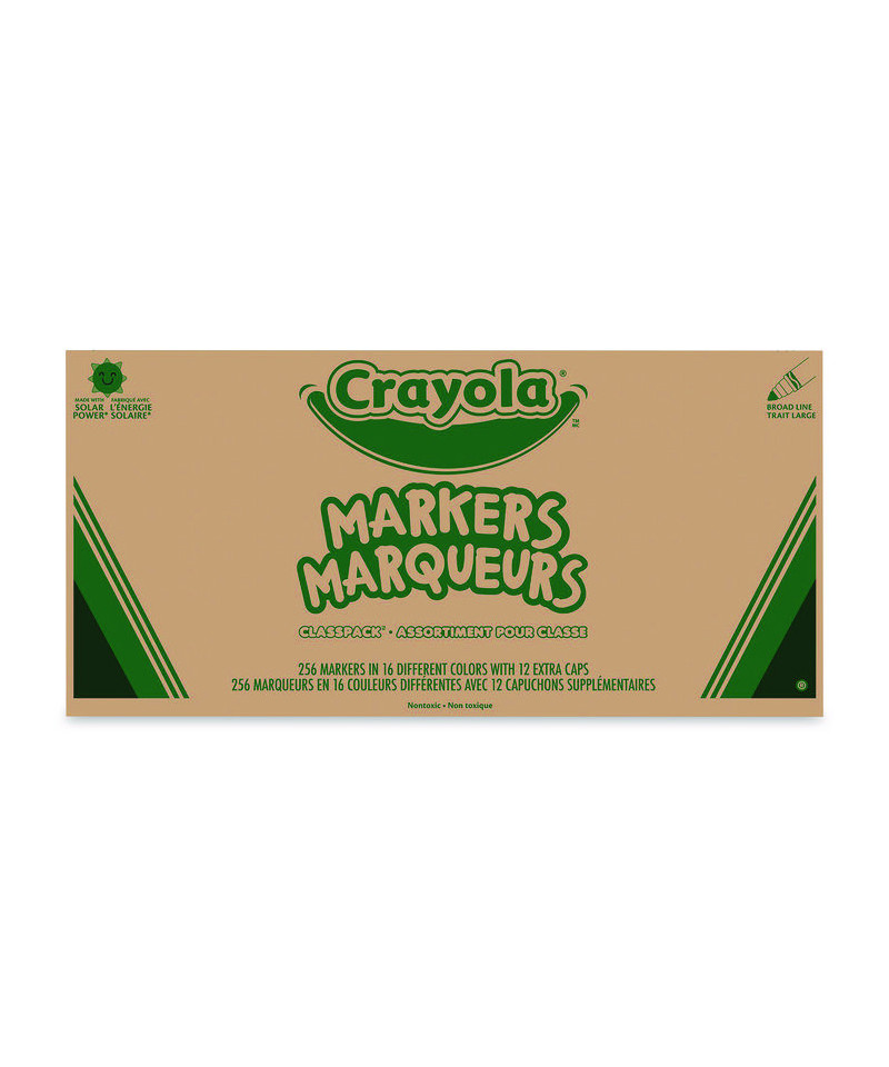 Classic, long-lasting, durable markers lay down lots of brilliant color. Great for coloring, drawing and art projects. True-to-color inks that do not smudge or bleed through paper. Broad conical tips fill in large areas as well as produce thin lines and dots. Colored barrels make it easy to identify the ink color. Come packaged inside a sturdy box with a cut-out window to view the colors before using.