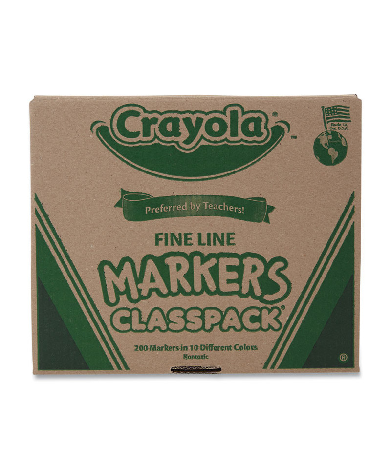 Check off some important school supplies from your back to school list with a Crayola Classpack. This large marker set features 200 Fine Line Markers, perfect for coloring fun, homework assignments, and school projects. Students can choose from 10 assorted marker colors to make and create whether at home or in the classroom. Bulk markers can be used for a wide range of projects and are ideal for providing supplies to groups of young artists. Durable, fine line marker tips withstand repeated use and will not easily push into the marker tubes. Crayola markers feature vivid colors that won't bleed or soak through the page. The divided storage box makes art supplies easy to organize and display. Safe and nontoxic, ideal for ages 4 and up.