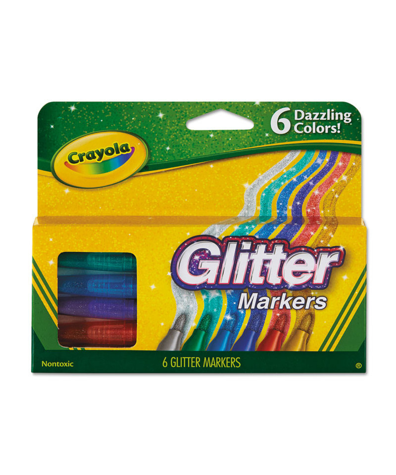 Brighten up your creations with a touch of sparkle and shine! The Crayola Glitter Markers are the perfect way to add an extra dazzling dimension to homemade cards, crafts, posters or foam boards and colorful art projects. Markers glide smoothly across multiple surfaces, leaving behind a trail of shimmering beauty. Ideal for school projects or afternoon crafts, these markers will surely add a memorable "pop" to any artistic creation. Give them as a great gift for girls and boys and birthdays, holidays, or just because. Crayola Markers are safe and non-toxic, great for ages 3 and up.