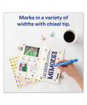 Won't dry out, even if you leave the cap off for up to half an hour! Bold, quick-drying, water- and rub-resistant permanent ink provides high visibility marking on virtually any surface: cardboard, metal, plastic and more. Durable, versatile tip allow you to easily control the width of your marks: from fine and thin to bold and thick. Low-odor and nontoxic—safe for the office, classroom and home.