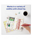 Won't dry out, even if you leave the cap off for up to half an hour! Bold, quick-drying, water- and rub-resistant permanent ink provides high visibility marking on virtually any surface: cardboard, metal, plastic and more. Durable, versatile tip allow you to easily control the width of your marks: from fine and thin to bold and thick. Low-odor and nontoxic—safe for the office, classroom and home.