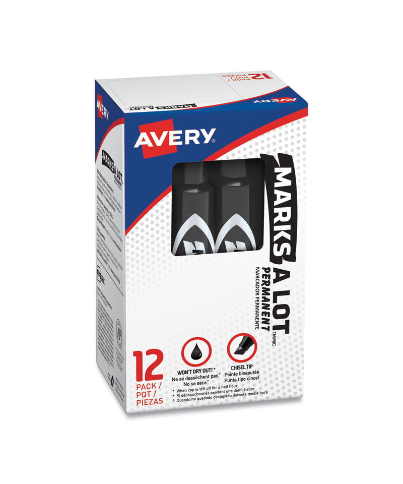 Won't dry out, even if you leave the cap off for up to half an hour! Bold, quick-drying, water- and rub-resistant permanent ink provides high visibility marking on virtually any surface: cardboard, metal, plastic and more. Durable, versatile tip allow you to easily control the width of your marks: from fine and thin to bold and thick. Low-odor and nontoxic—safe for the office, classroom and home.