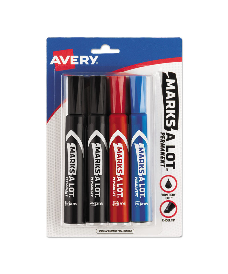 Won't dry out, even if you leave the cap off for up to half an hour! Bold, quick-drying, water- and rub-resistant permanent ink provides high visibility marking on virtually any surface: cardboard, metal, plastic and more. Durable, versatile tip allow you to easily control the width of your marks: from fine and thin to bold and thick. Low-odor and nontoxic—safe for the office, classroom and home.