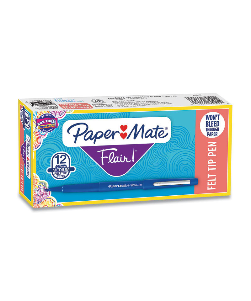 Add bright, vivid details to your writing and drawing with Paper Mate Flair Felt Tip Pens. Featuring a comfortable barrel grip and high-quality water-based inks, these pens are compatible with most surfaces and won't bleed through paper. These pens feature point guards that prevent the tips from fraying and drying out to keep your pen fresh. Every stroke produces bold, clean lines that are perfect for drawing, editing documents and checking papers.