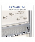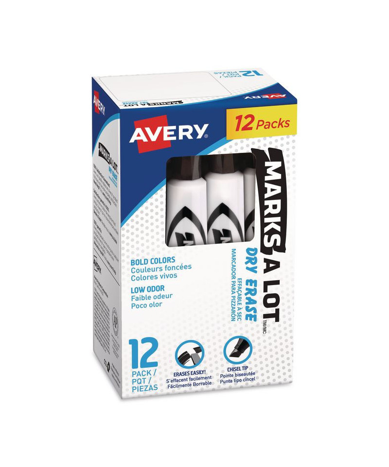 Ink erases easily and cleanly with a dry cloth or eraser. Improved vibrant color and long-lasting writing. Marks on whiteboard, glass, and other nonporous surfaces. Durable chisel tip marks in a variety of widths. Cap can be left off for 24 hours without drying out. Low odor.