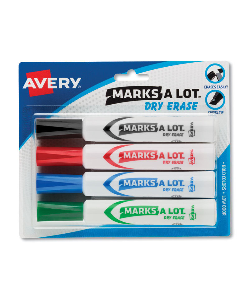 MARKS A LOT Desk-Style Dry Erase Marker, Broad Chisel Tip, Assorted Colors, 4/Set (24409)
