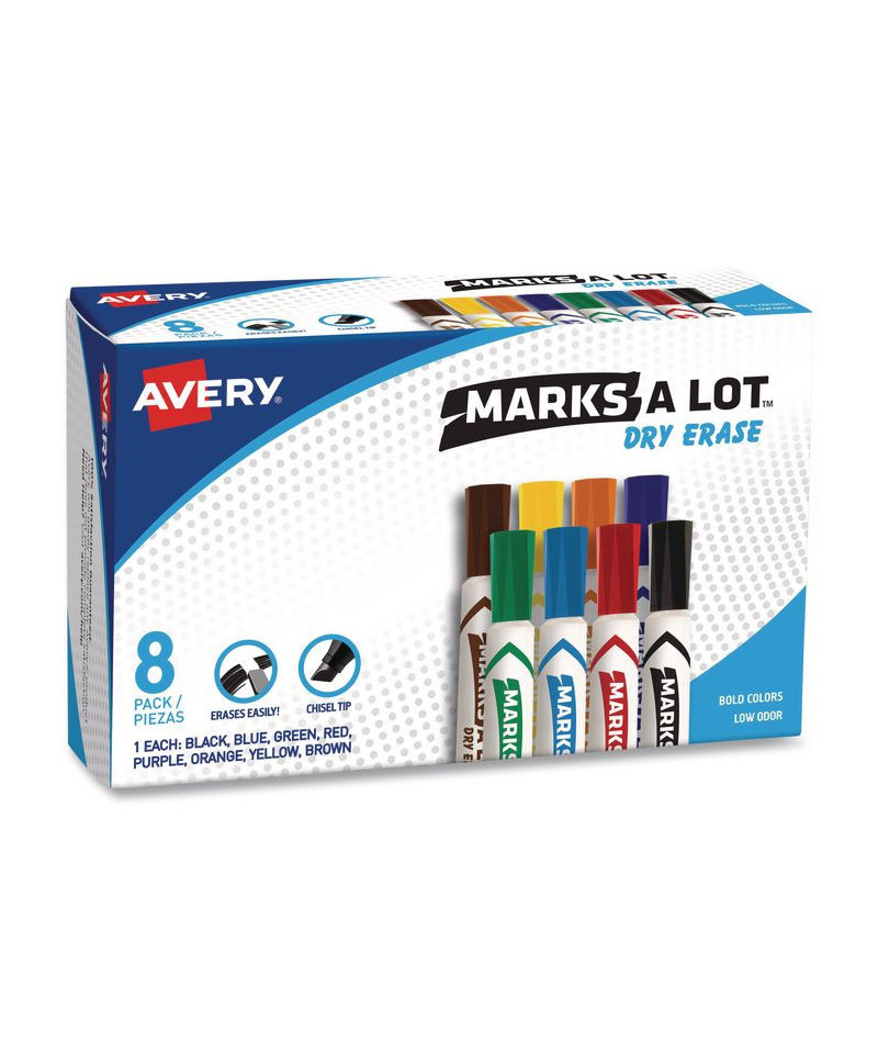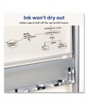 Ink erases easily and cleanly with a dry cloth or eraser. Improved vibrant color and long-lasting writing. Marks on whiteboard, glass, and other nonporous surfaces. Durable chisel tip marks in a variety of widths. Cap can be left off for 24 hours without drying out. Low odor.