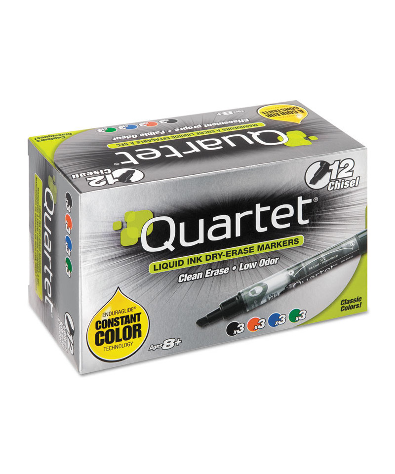 EnduraGlide Dry Erase Marker, Broad Chisel Tip, Four Assorted Colors, 12/Set