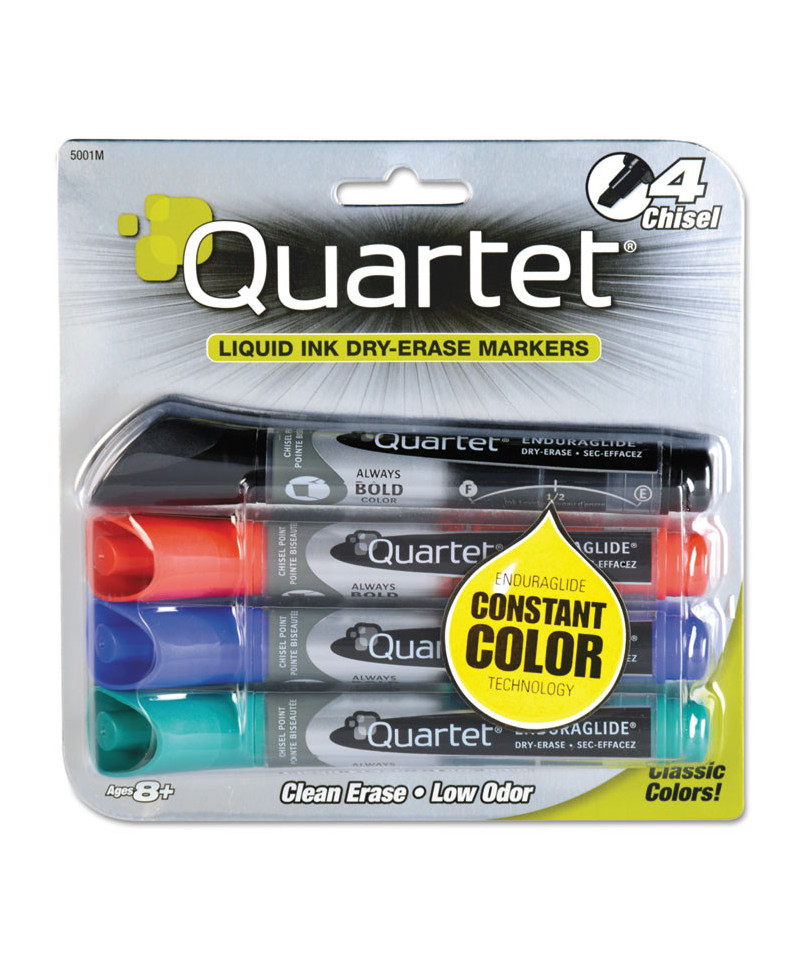 EnduraGlide Dry Erase Marker, Broad Chisel Tip, Assorted Colors, 4/Set