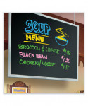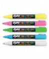 Create attention-grabbing signage and designs for restaurants, stores, parties and festivals on black erase boards, white boards and glass. Bright neon colors are ideally suited for areas illuminated by ultraviolet lighting. When using a wet cloth, the certified water-based ink formula easily wipes off of any dry-erase surface.