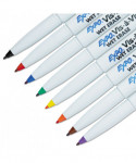 Handy pen is designed specifically for marking on acetate films, such as overhead projector transparencies and laminated boards. Formulated for intense heat, the fade-proof ink dries quickly, without bubbles or cracks. Durable fine-point tip aids in the production of highly detailed graphics and legible text. Bold, bright colors help your ideas stand out. Marks wipe away easily with a damp cloth. Odorless Vis-ŕ-Vis products are an ideal choice for use in classrooms and small offices.