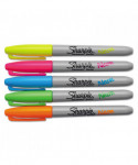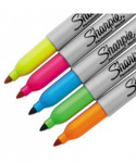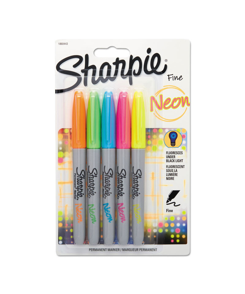 Uncap full-on Neon. Electrify your message, and your audience, with vividly luminous Sharpie Neon Permanent Markers. Brilliant in daylight and fluorescent under black light, these Sharpie markers make all of your writing and art pop with electrical impact. Each Sharpie Neon Fine Point Marker is jam packed with quick-drying, fade- and water-resistant ink that's designed to make scorching marks on most surfaces. Reimagine what color can be by unleashing the full-on fluorescent fun of Sharpie Neon Permanent Markers.