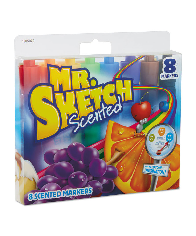 With their vibrant colors and fun, evocative scents, Mr. Sketch Scented Markers help inspire your child's imagination. These markers feature versatile chisel tips that produce three different line widths, so kids can easily pivot between a precise point and wide brush-like strokes without switching markers. And thanks to the large cylinder design, the markers are easy for little hands to grip and use.