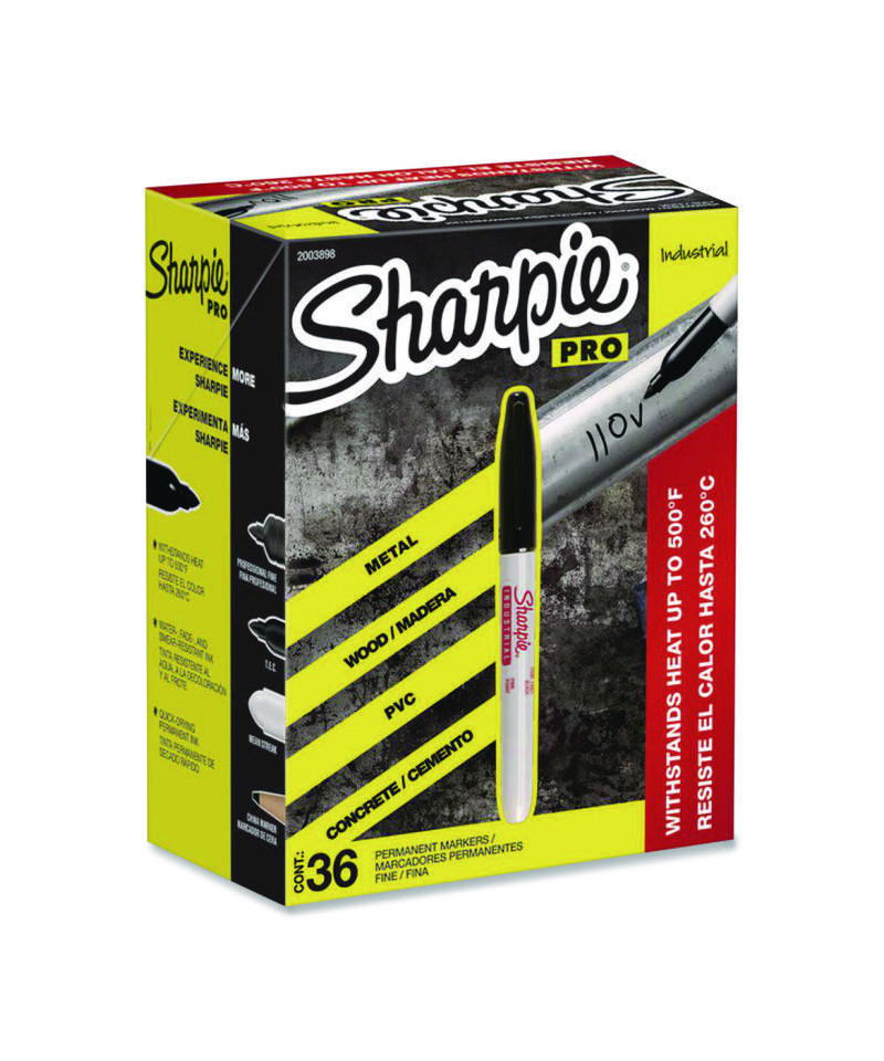 Sharpie Professional Industrial Permanent Markers feature durable permanent inks that resist fading when put to commercial use. The ink is suited for industrial applications, including extreme heat (up to 500 degrees Fahrenheit). These permanent markers can be used on most materials including metal, glass, plastic, film, and foil.