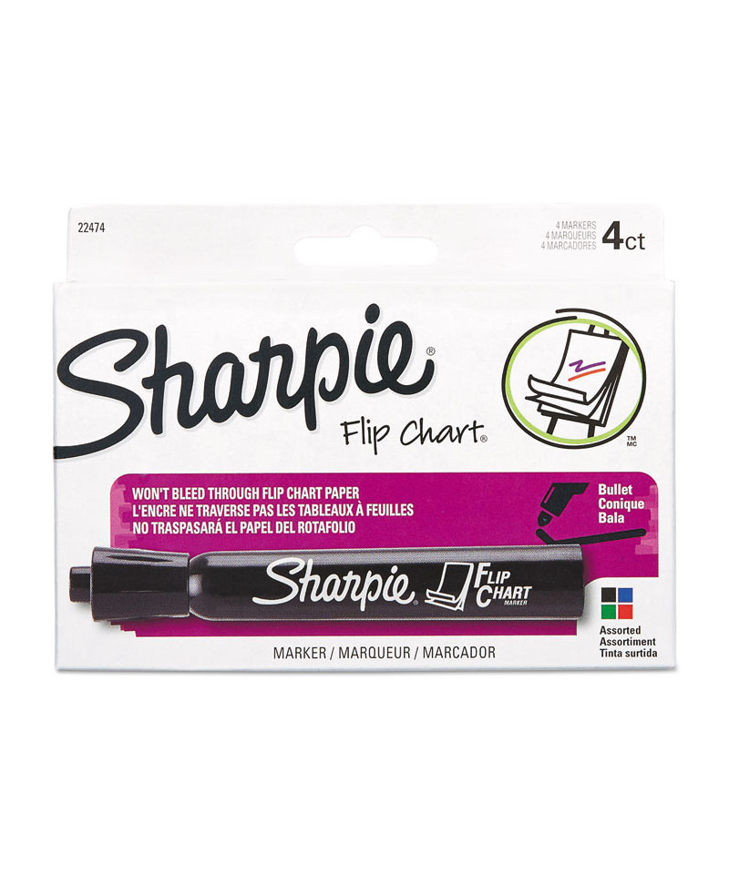 Sharpie Flip Chart Markers feature a non-toxic, low-odor formula--ideal for classrooms and offices. The unique water-based ink won't bleed through flip chart pages. Bullet tips minimize marker squeaks for less distraction during presentations and brainstorming sessions.