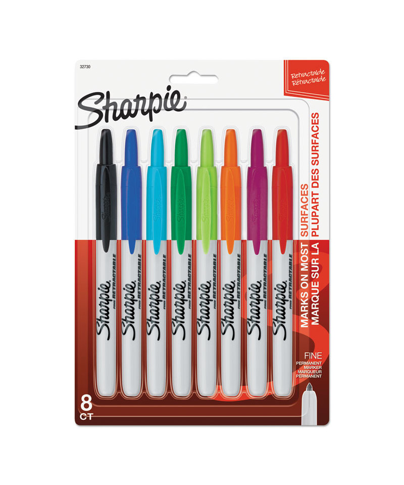 Forget about a cap—just click and create! These markers are easy to use, bold to the max, and permanent to the core, inspiring you to transform ordinary surfaces into passionately creative statements. Made to write practically everywhere, vivid Sharpie markers eliminate dull and boring. Sharpie has iconic ink that dries quickly and resists both water and fading. While pale imitations wither away, Sharpie markers make creations that endure. And these retractable markers have a safety seal valve design that helps prevent the ink from drying out. Featuring a convenient design for one-handed operation with no cap to remove or lose, Retractable Sharpie Permanent Markers make courageous self-expression as easy as can be.