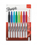 Retractable Permanent Marker, Fine Bullet Tip, Assorted Colors, 8/Set
