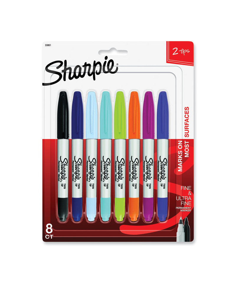 With two tips in one, these markers let you express yourself any way you want. Bold to the max and permanent to the core, Sharpie® permanent markers inspire you to transform ordinary surfaces into passionately creative statements. Made to write practically everywhere, vivid Sharpie® markers eliminate dull and boring. Sharpie® has iconic ink that dries quickly and resists both water and fading. While pale imitations wither away, Sharpie® markers make creations that endure. Featuring both a bold fine point and a precise ultra-fine tip, Sharpie® Super Twin-Tip Permanent Markers ignite courageous self-expression.