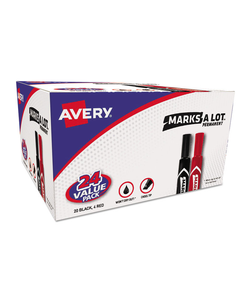 Won't dry out, even if you leave the cap off for up to half an hour! Bold, quick-drying, water- and rub-resistant permanent ink provides high visibility marking on virtually any surface: cardboard, metal, plastic and more. Durable, versatile tip allow you to easily control the width of your marks: from fine and thin to bold and thick. Low-odor and nontoxic—safe for the office, classroom and home.