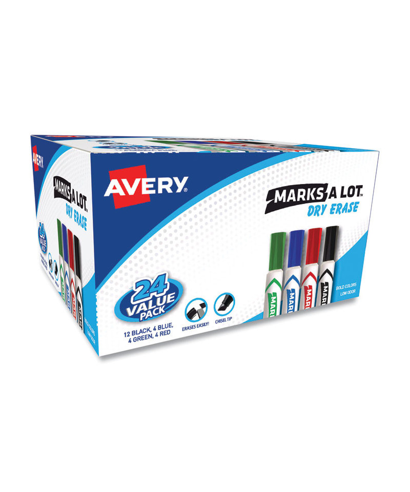 MARKS A LOT Desk-Style Dry Erase Marker Value Pack, Broad Chisel Tip, Assorted Colors, 24/Pack (98188)