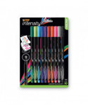 BIC Intensity Fineliner Pro writes like a pen, and is bold like a marker. This pen has bold colors, that won't bleed through paper (results could vary based on paper characteristics). Tip provides smooth, colorful precision. The metal nib protects the tip from wearing down. This pen is perfect for notetaking, creative writing, adult coloring, and journaling. The water-based ink makes it perfect for writing on paper and is AMCI approved non toxic.