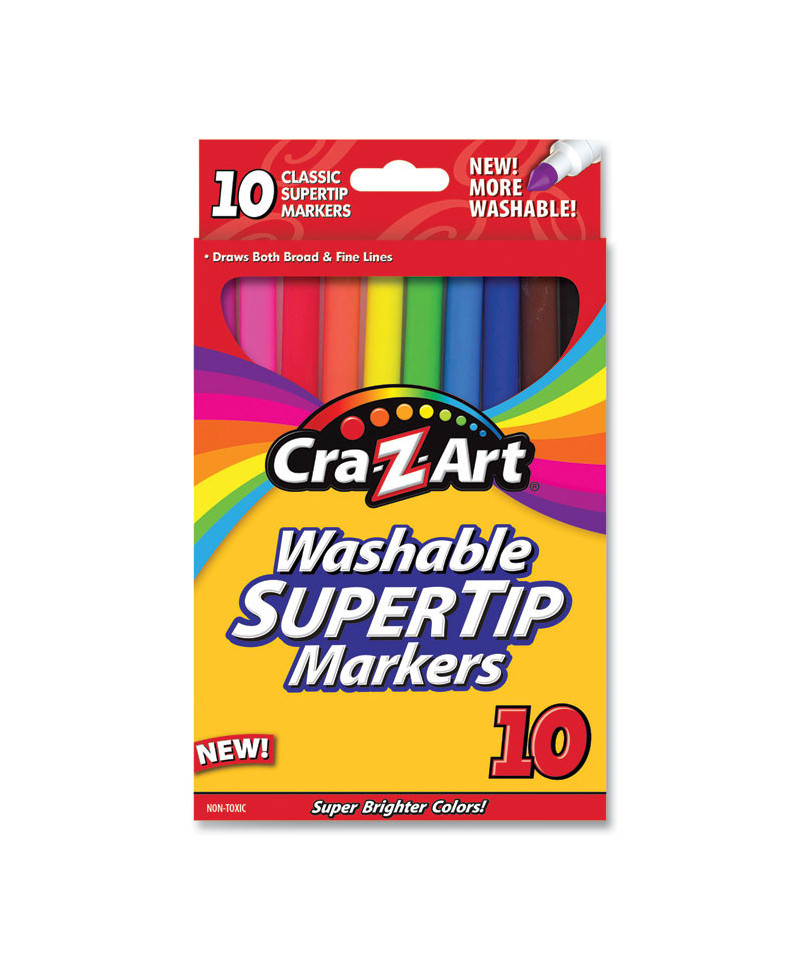 Washable SuperTip Markers, Fine/Broad Bullet Tips, Assorted Colors, 10/Set
