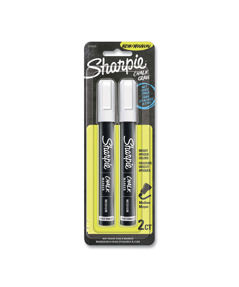 Make your writing or drawing stand out with Sharpie® Chalk Wet Erase Markers. These brilliant chalkboard markers mark brightly on blackboards, light boards, white boards, glass, and more. For convenient cleanup, these markers wipe off easily with a damp cloth. Depend on these markers for eye-catching displays or writing in the classroom, your business, or home.