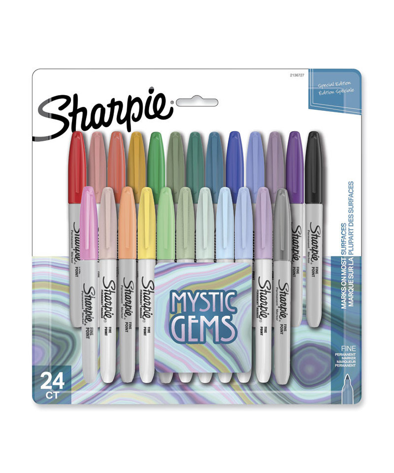 Made to mark practically anywhere, Sharpie Permanent Markers inspire you to transform ordinary surfaces into passionately creative statements. This special-edition pack features Sharpie Markers in classic and Mystic Gem colors, which combine soft pastels with darker, natural colors to produce vibrant marks inspired by the dynamic energy of gemstones. The iconic ink that dries quickly and resists both water and fading.