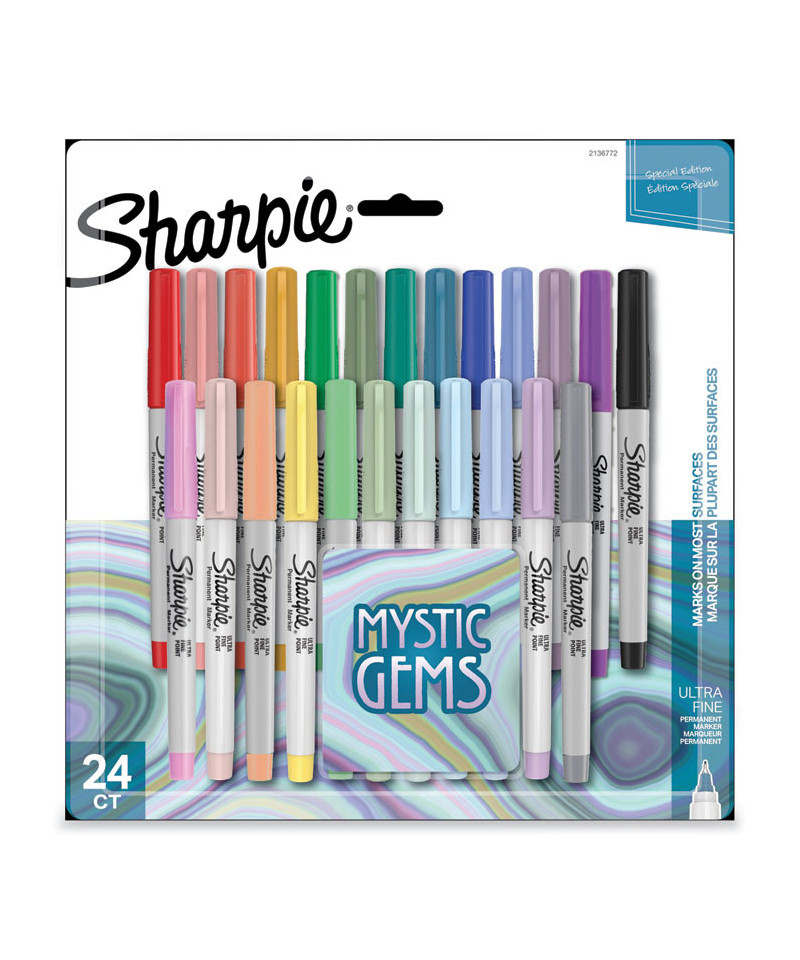 Made to mark practically anywhere, Sharpie Permanent Markers inspire you to transform ordinary surfaces into passionately creative statements. This special-edition pack features Sharpie Markers in classic and Mystic Gem colors, which combine soft pastels with darker, natural colors to produce vibrant marks inspired by the dynamic energy of gemstones. The iconic ink that dries quickly and resists both water and fading.