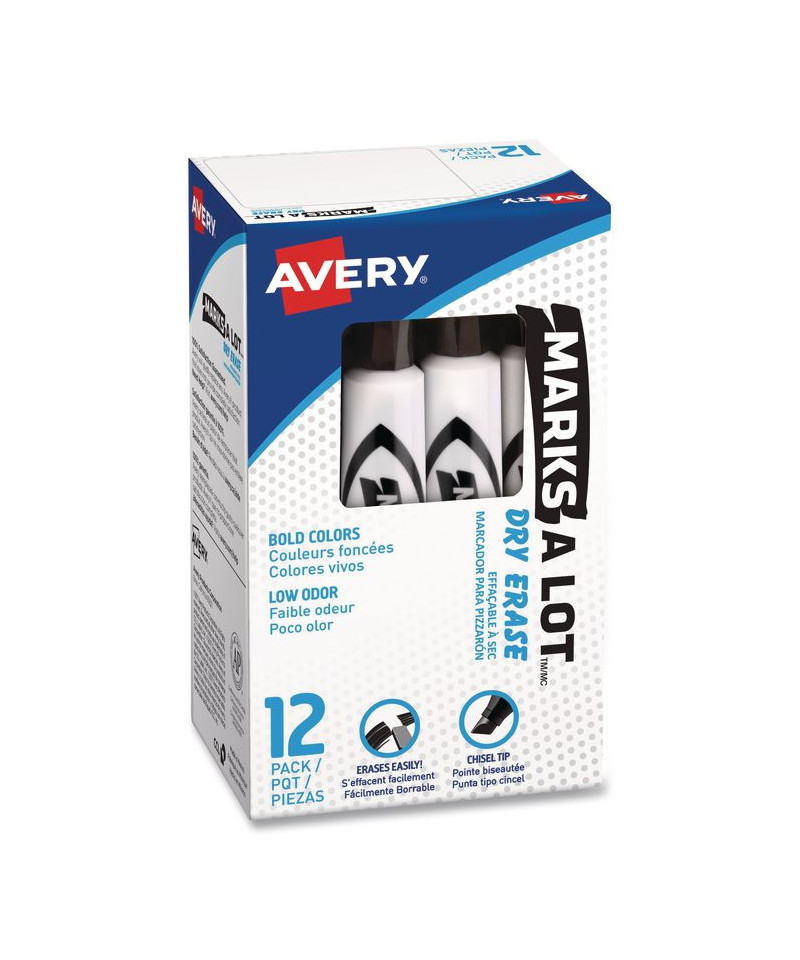 Ink erases easily and cleanly with a dry cloth or eraser. Improved vibrant color and long-lasting writing. Marks on whiteboard, glass, and other nonporous surfaces. Durable chisel tip marks in a variety of widths. Cap can be left off for 24 hours without drying out. Low odor.