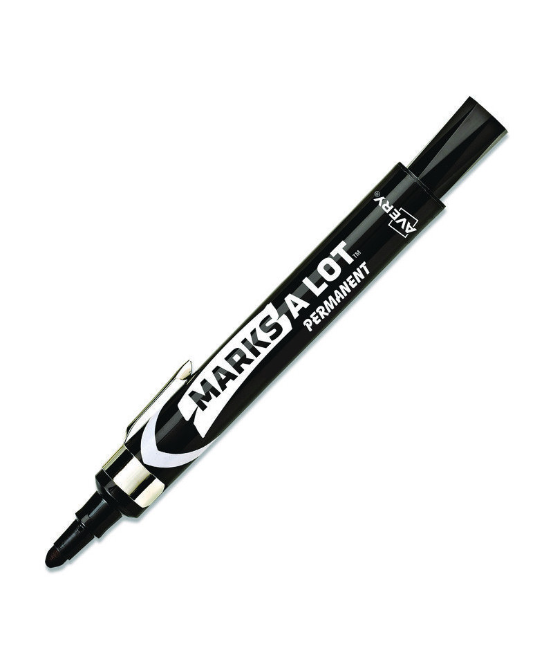 Leave your mark with these remarkable, water-, fade- and wear-resistant markers. Their ink sets into your chosen media quickly but won't dry out, even if you leave the cap off for up to 30 min. And as these large markers hold over 30% more ink than comparably sized alternatives, long-lasting performance is guaranteed. Durable tip eliminates the potential for fraying and is designed to leave clean, bold text. Ideal for almost every conceivable surface: paper, cardboard, metal, PVC, concrete, plastic, ceramics and more, they're an excellent choice for just about any scenario, from marking construction materials to labeling sports equipment to creating yard sale signs. Handy pocket clip makes it easy to carry a MARKS A LOT® marker wherever you go, whether you're off to the classroom, office, jobsite, factory floor or simply heading home. Low-odor and non-toxic.