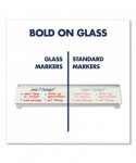 Optimized for use on contemporary, super smooth glass surface boards. Delivers bold color with best in class liquid ink delivery system. Low odor, easy to erase markers are great for any environment. Bullet tip creates thick, broad lines for messages that are clear and easy to read both up close and from a distance. Glass board dry-erase markers feature a see-through ink gauge to clearly see how much ink remains.