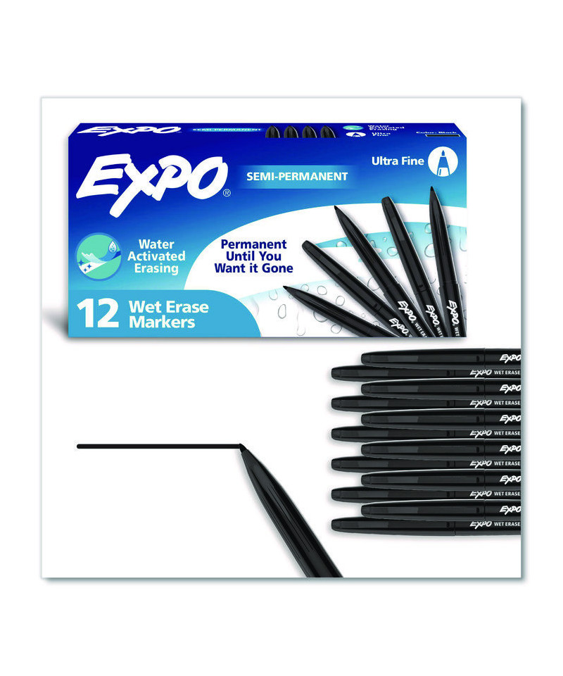 Adapt and evolve your ideas with ease using EXPO® Wet Erase Markers. These EXPO® markers are permanent until you want it gone; with water-activated erasing technology they wipe clean with water when you're ready for a fresh start! These markers make vibrant, sharp marks and are perfect for capturing plans that last, labeling with flair, or creating colorful displays on glass, whiteboards, and other non-porous surfaces.