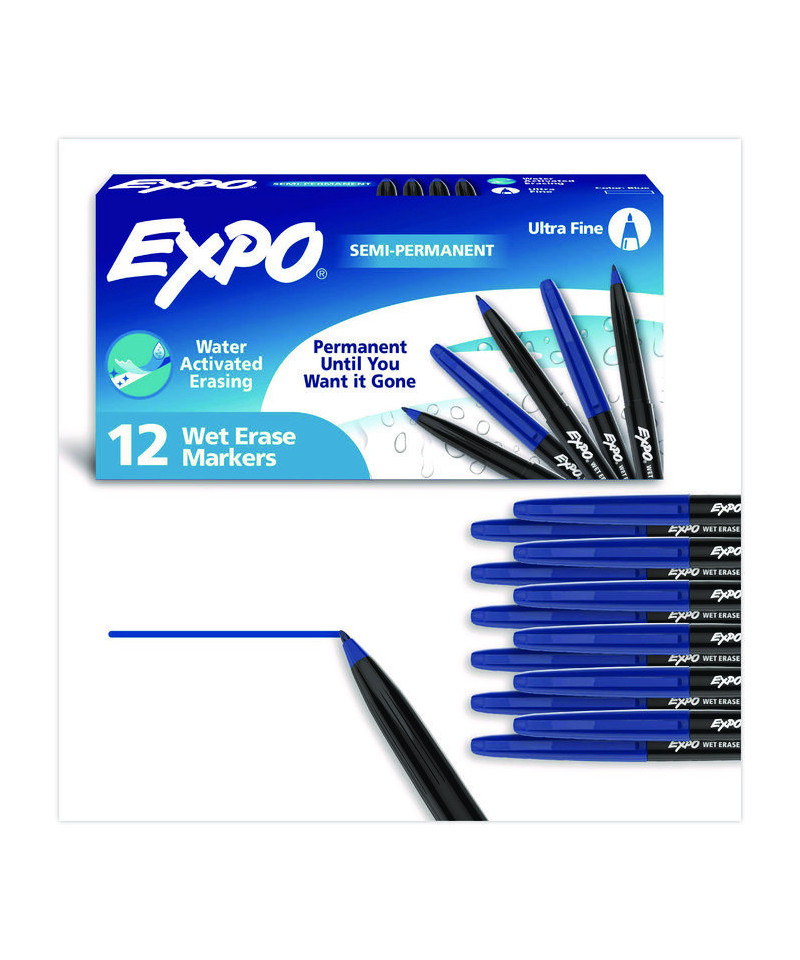 Adapt and evolve your ideas with ease using EXPO® Wet Erase Markers. These EXPO® markers are permanent until you want it gone; with water-activated erasing technology they wipe clean with water when you're ready for a fresh start! These markers make vibrant, sharp marks and are perfect for capturing plans that last, labeling with flair, or creating colorful displays on glass, whiteboards, and other non-porous surfaces.