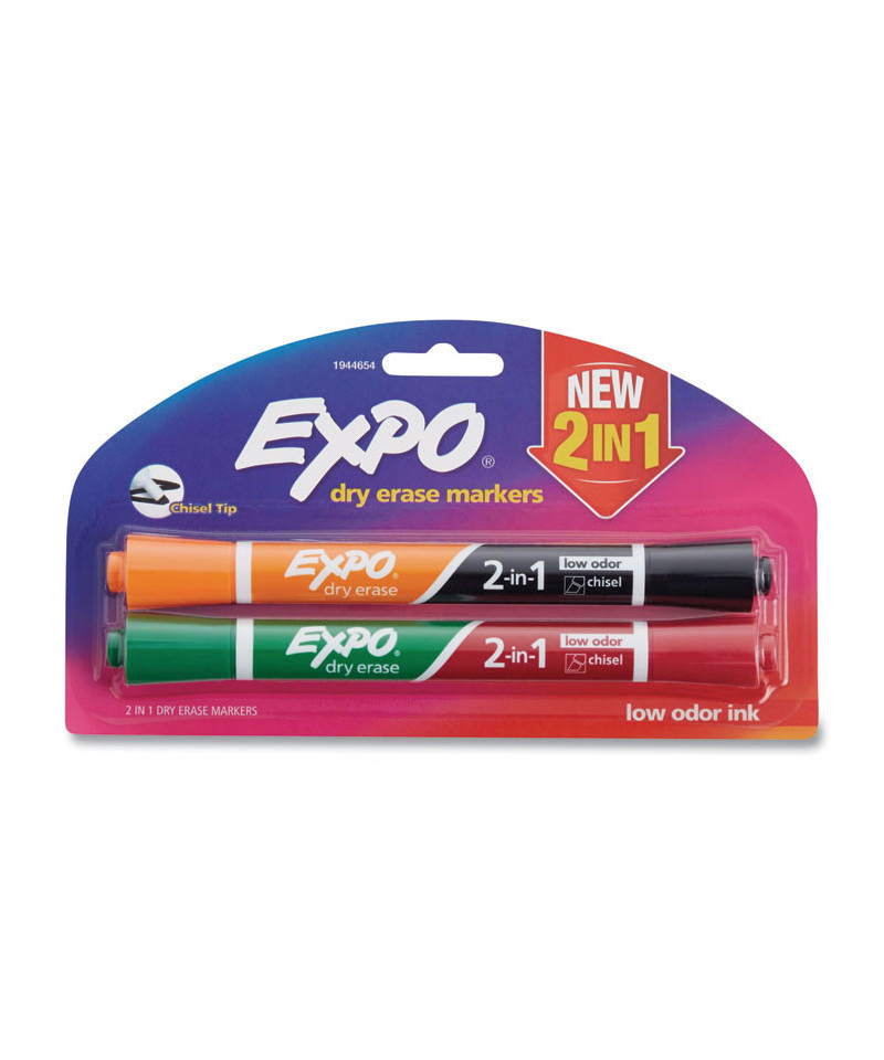 Two chisel tip colors in one dry erase marker. Use EXPO® colors to track, schedule and present. Low-odor ink. For use on whiteboards, glass and most non-porous surfaces.