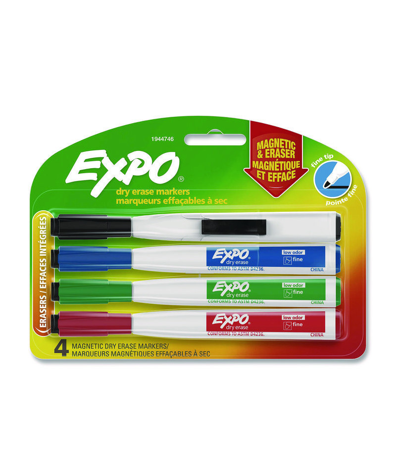 Magnetic dry erase markers have an integrated magnet for convenient storage on metal surfaces. A handy eraser on the cap makes it easy to eliminate mistakes. Bold, vibrant colors make it easy to make a statement.