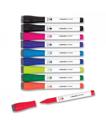 Lock your whiteboard markers to any metal surface with magnetic dry erase markers. An integrated magnet provides convenient and care-free storage on metal-backed white boards and other metal surfaces. What's more, the cap features a handy eraser for precise, on-the-fly erasing. Quick-drying, low-odor ink is perfect for both the office and classroom.